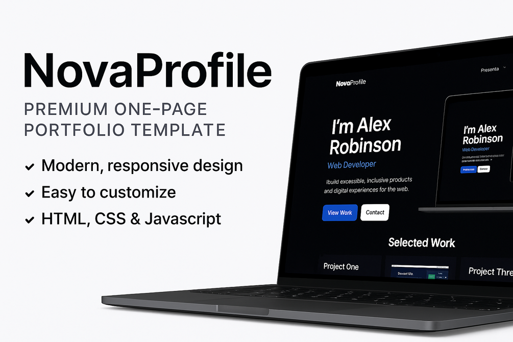 NovaProfile is a premium one-page portfolio website template built with clean HTML, CSS, and a tiny bit of JavaScript. It’s designed for developers, designers, freelancers, and students who want a professional online presence without messing with frameworks, build tools, or complex setups.
